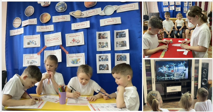 Просмотрели познавательные видеоролики, увлекательные интерактивы, собирали ракету, отгадывали кроссворды, изучали космические профессии и космодромы России.