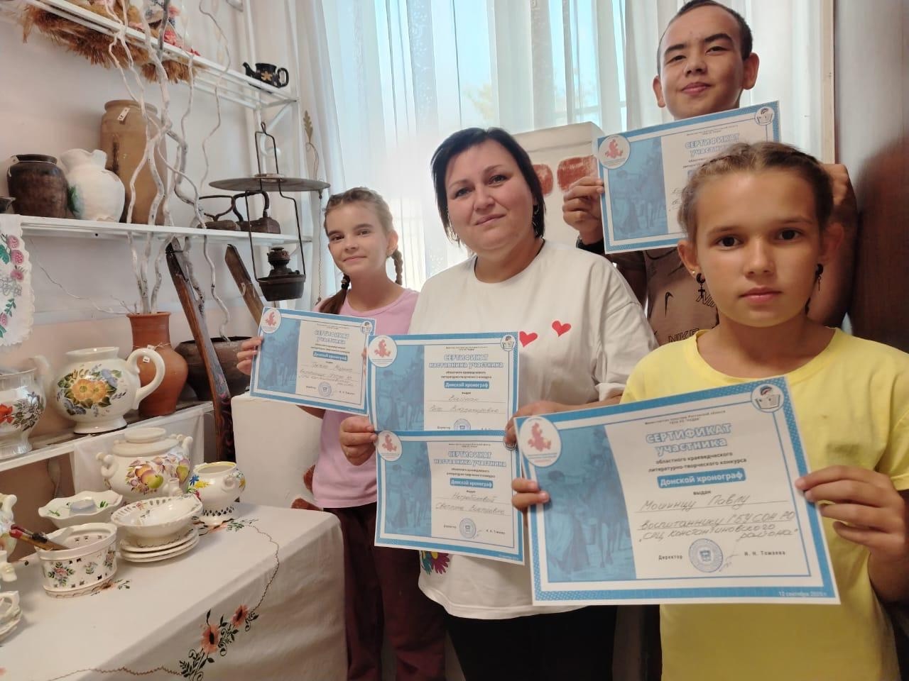 Воспитанники ГБУСОН РО «СРЦ Константиновского района» приняли участие в ежегодном областном краеведческом литературно-творческом конкурсе «Донской хронограф», посвящённом 120-летию со дня рождения Михаила Александровича Шолохова и 455-летию служения донских казаков Российскому государству, организованным Ростовской областной детской библиотекой имени В.М.Величкиной.
