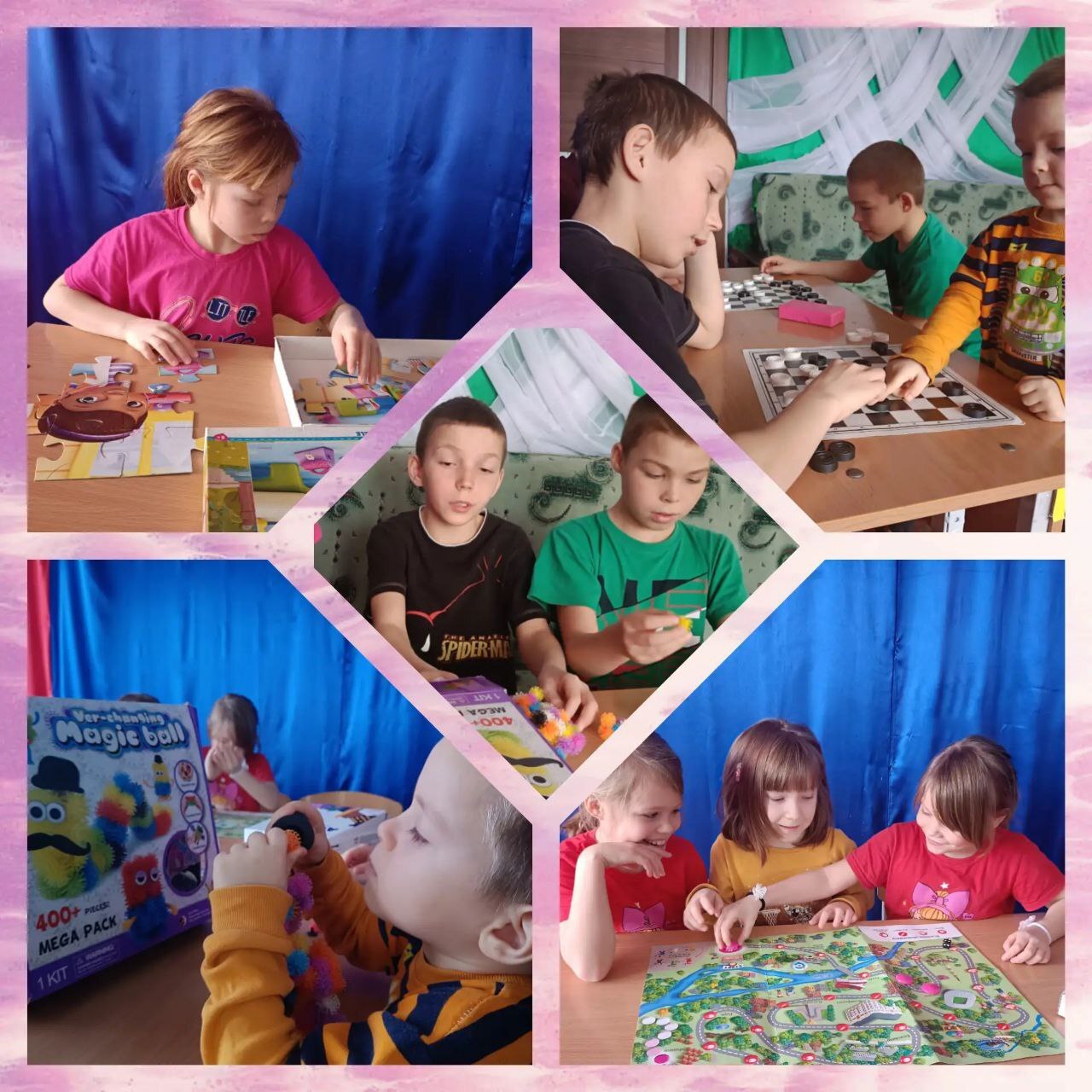 С большим удовольствием ребята играли в шашки, настольные игры - «Бродилки», собирали пазлы и конструктор - липучку «Банчемс».