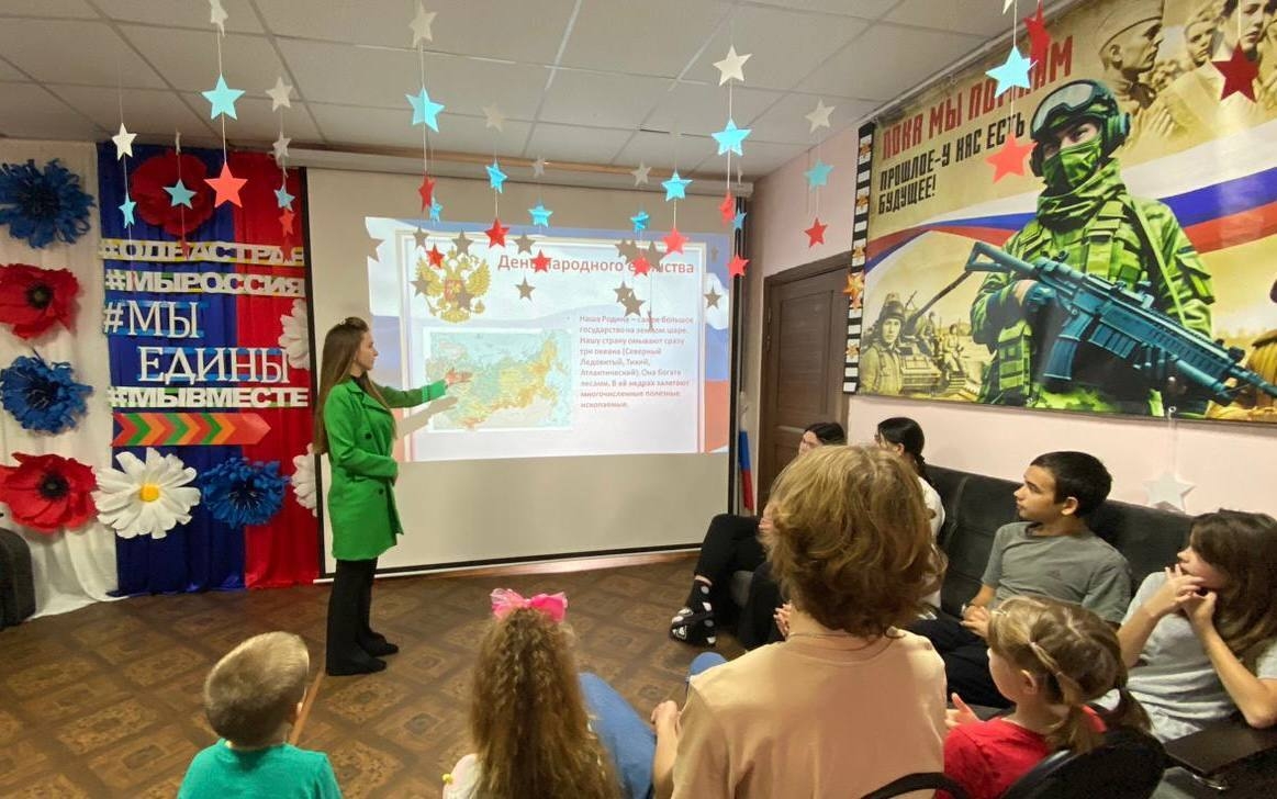 Детям рассказали о значении этого важного праздника, его исторических корнях и событиях, которые привели к объединению народа. В ходе мероприятия ребята узнали о трудностях, которые пережила наша страна, о её восстановлении и сплочении. Беседа была наполнена интересными фактами и познавательной информацией, что позволило детям глубже понять важность единства и взаимопомощи в истории России.
