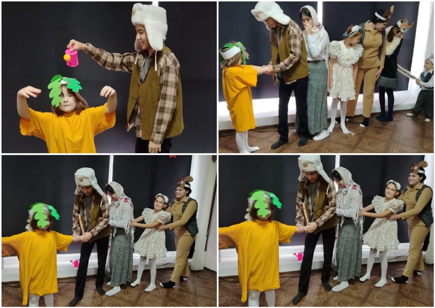 В постановке участвовали воспитанники разного возраста, ребята учились организовывать общение друг с другом, делали первые шаги в выражении своих эмоций, учились правильно понимать состояние своих героев, детям было интересно: стеснительные и застенчивые ребята раскрепощаются, становятся общительными, у них развивается артистизм, связная, эмоциональная речь.