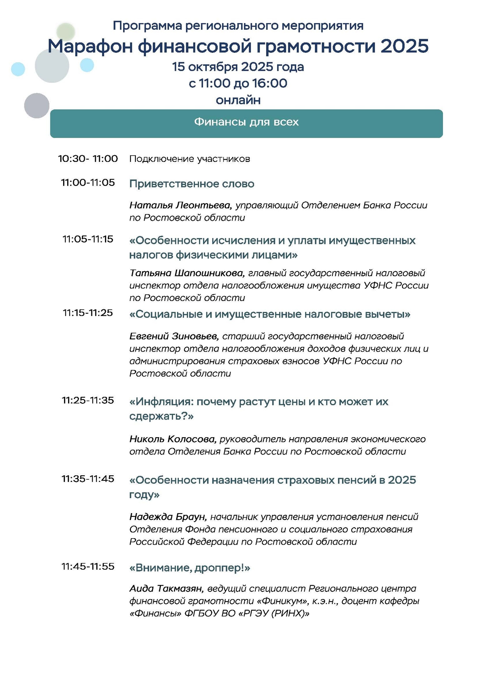 15 октября 2025 года пройдет ежегодный региональный «Марафон финансовой грамотности – 2025» для населения и бизнеса области с участием широкого круга ведомств.